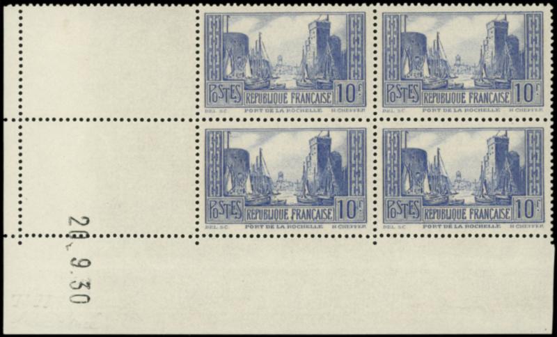 261d La Rochelle, 10f. outremer, T II, BLOC de 4 CD 20/9/30, ch. s. un bord, TB (Image)