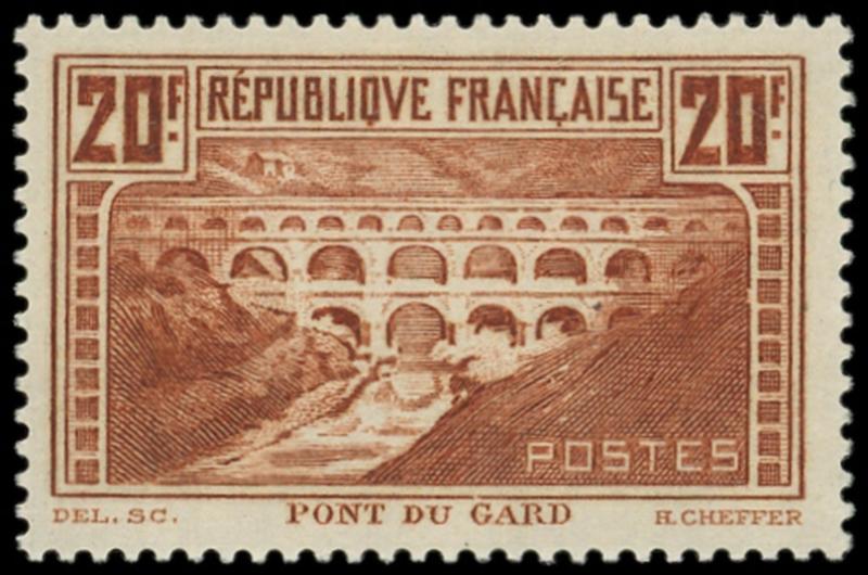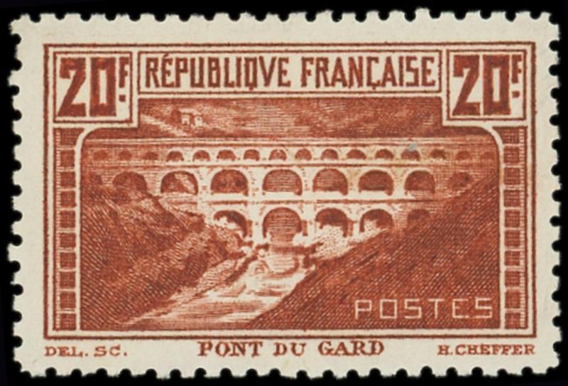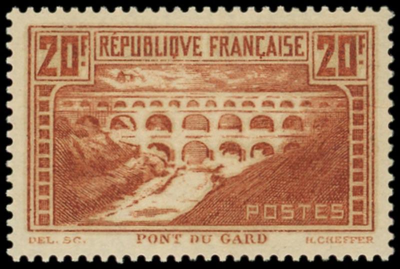 262B Pont du Gard, 20f. chaudron clair, T I, dent. 11, très bien centré, Superbe (Image)