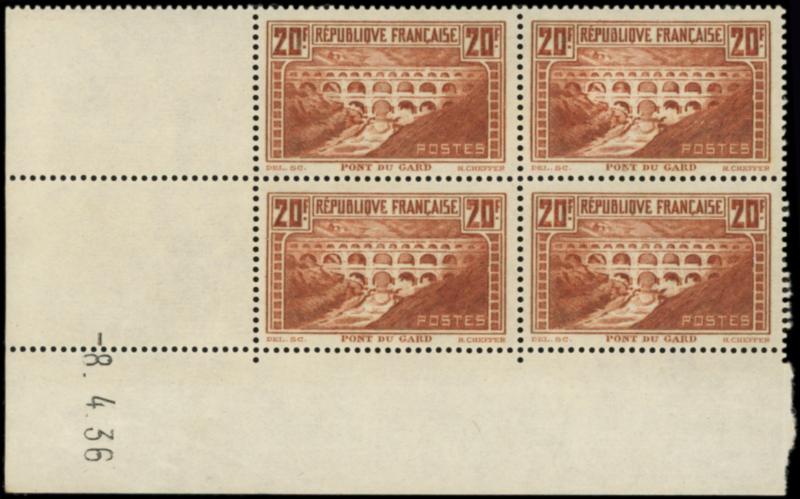 262 Pont du Gard, 20f. chaudron, BLOC de 4 CD 8/4/36, TB (Image)