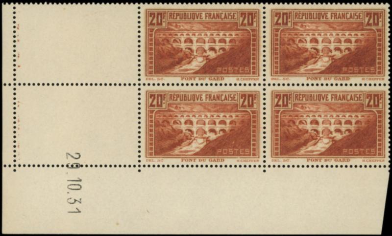 262b Pont du Gard, 20f. chaudron clair, T IIB rivière blanche, BLOC de 4 CD 29/10/31, TB (Image)