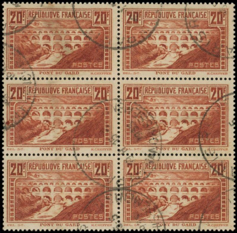 262b Pont du Gard, 20f. chaudron clair, T IIB, rivière blanche, BLOC de 6 obl., TB (Image)