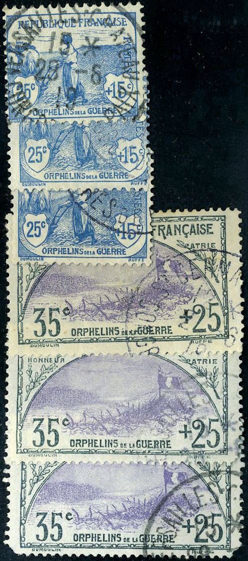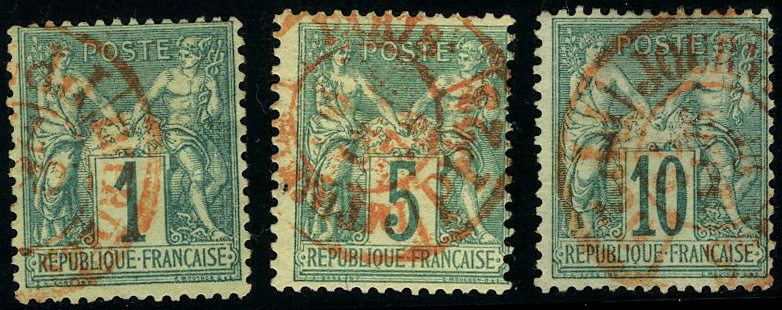 N° 61+64+65, 1, 5 et 10c obl. CàD rouge, TB (Image)