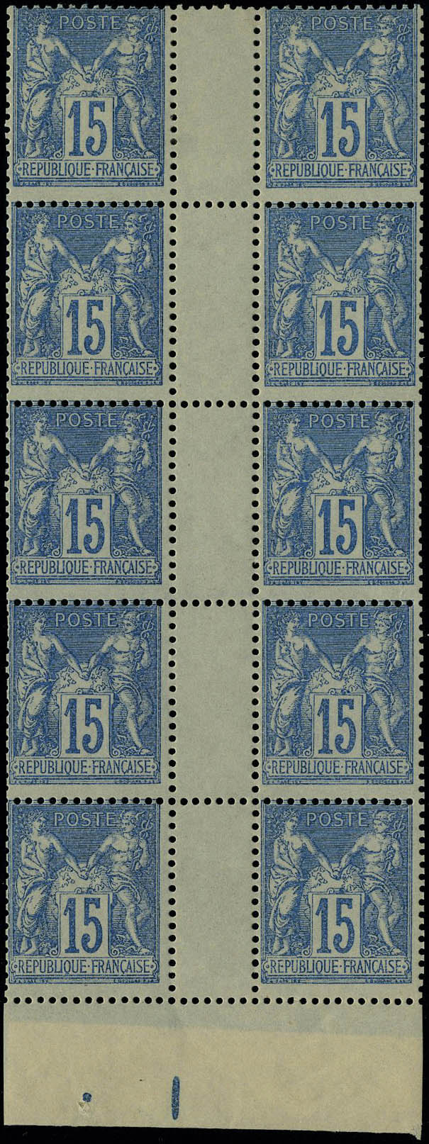 N° 90, 15c bleu, bloc de 10, interpanneau sans millésime, T.B. 2ex cl (Image)