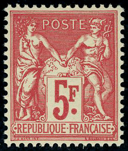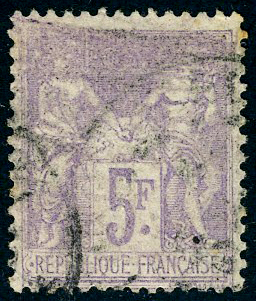 N° 95, 5F violet s/lilas, impression maculée sans légende Poste en haut du timbre, TB, signé Calves + Brun (Image)