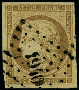 N° 1a, 10c bistre-brun, obl PC, TB, signé Calves (Image)