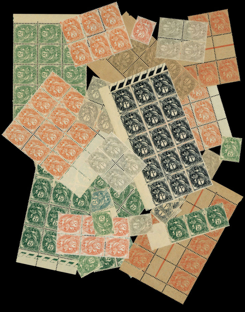 N° 107,+ 109 + 111, 1, 3 et 5c type Blanc x 50 ex. de chaque, nuances papiers types différents, TB - Photo Web (Image)