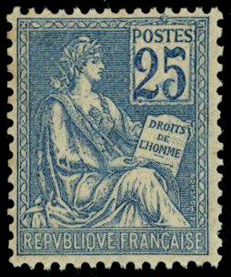 N° 114, 25c bleu, qqs rousseurs, sinon TB, bon centrage - photo Web (Image)