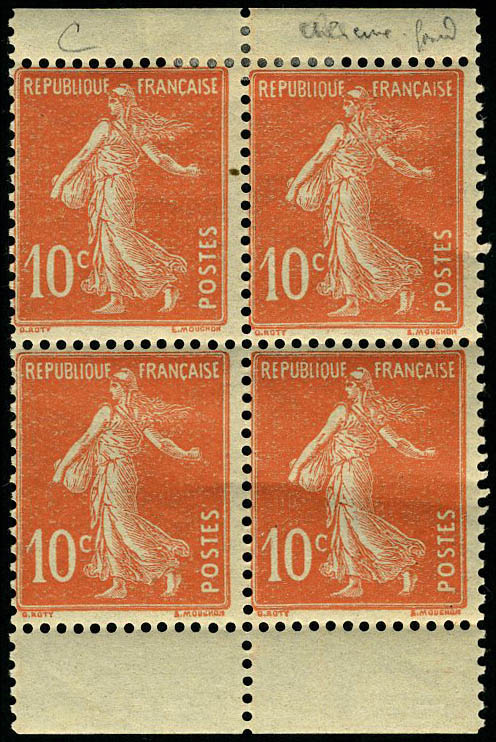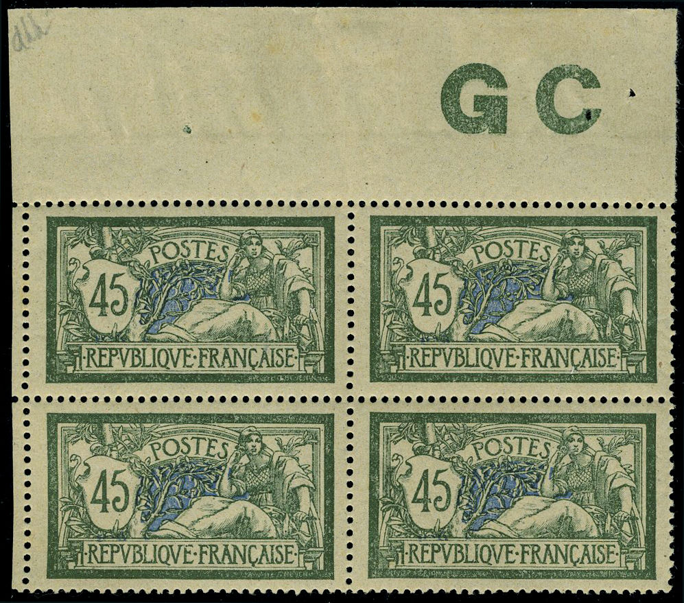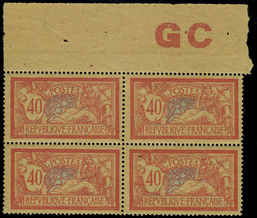 N° 119d, 40c Merson, bloc de 4 avec manchette GC, TB - Photo Web (Image)