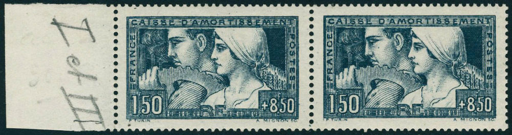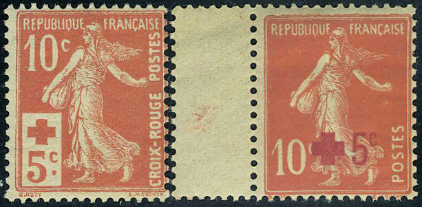 N° 252 + 252b, Le Travail, types I et III se tenant en paire hor. bdf, T.B. (Image)