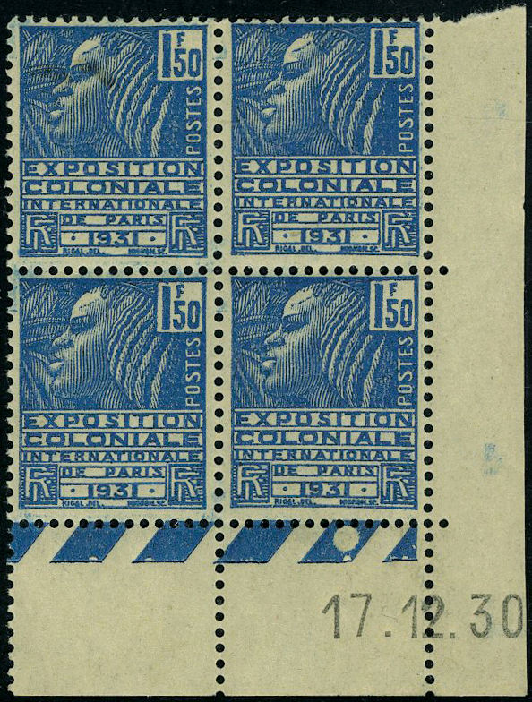 N° 273, 1F50 bleu, bloc de 4, coin daté 17/12/30, TB - Photo Web (Image)