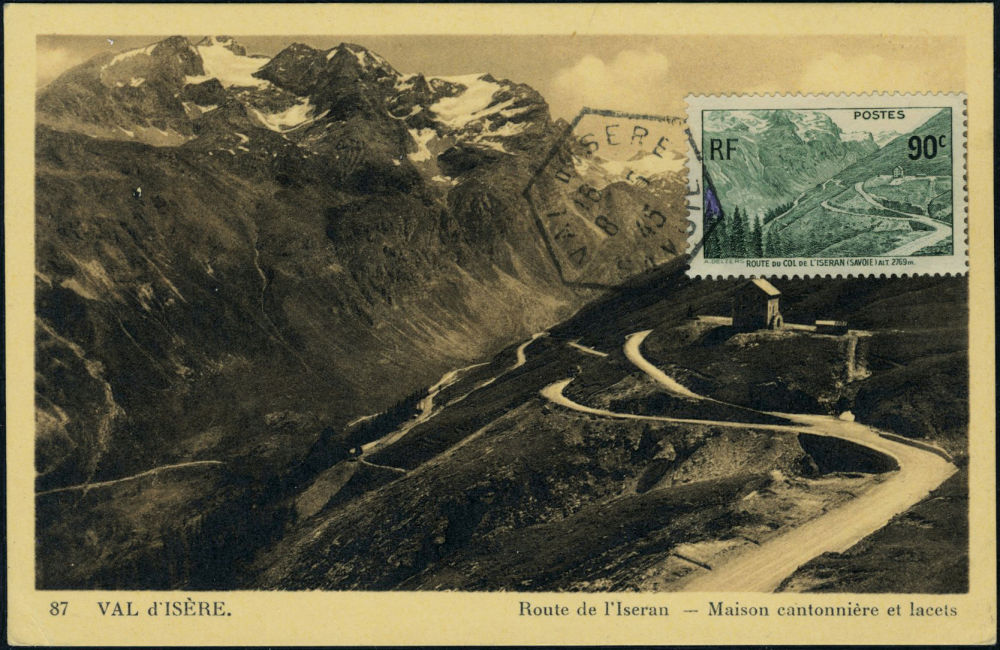 N° 358, 90c, Col de l'Iseran, C.M, éd. TUM 87, OBL hexagonale Val d'Isère 16/8/45, TB - Photo Web (Image)