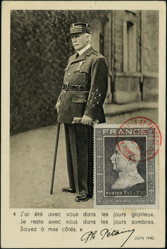 N° 606, PETAIN s/C.M, OBL rouge Marseille 24/4/44, TB - Photo Web (Image)