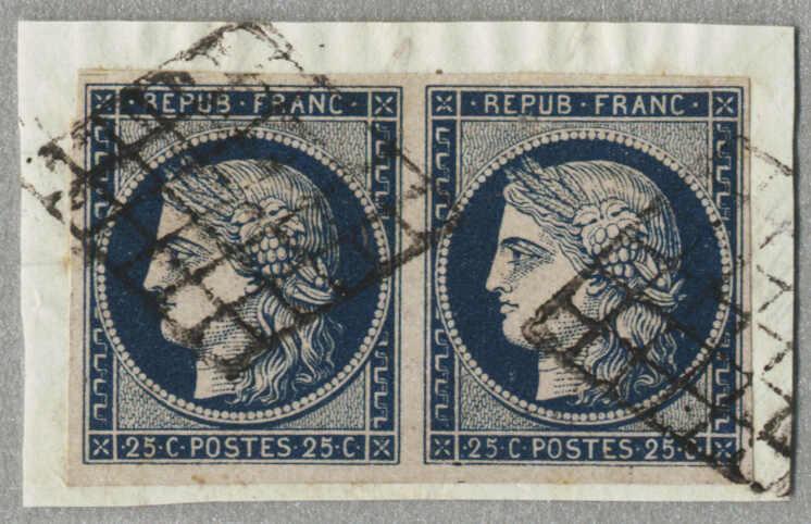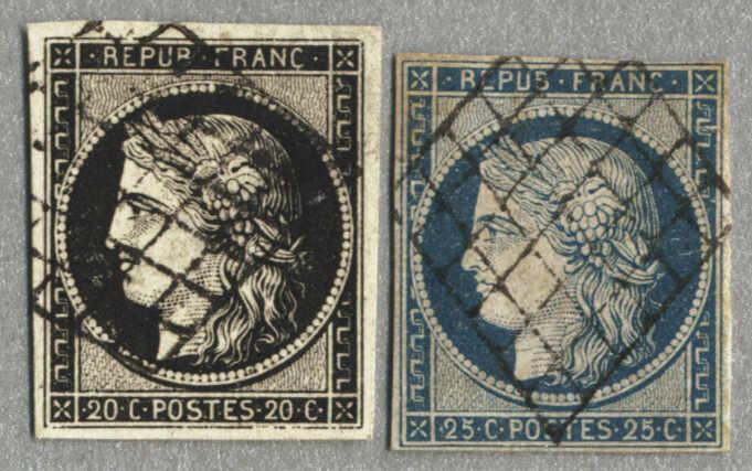 1849-50, 20c., 25c., (2), imperf., unwmk., Ceres stamps, used, good margins, interesting and desirable, VF! Schätzpreis 100€. (Image)