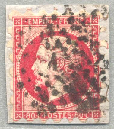 1853-60, 80c, deep carmine lake, on piece, privately perf. 7, cancelled, interesting and desirable, VF! Schätzpreis 90€. (Image)