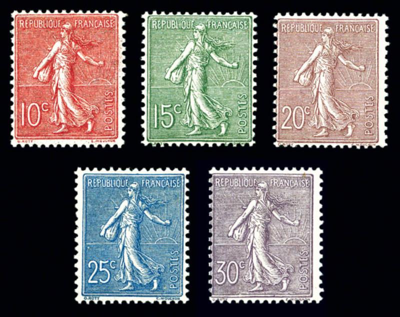 N°129/133, Série Semeuse, les 5 valeurs SUP (certificat) Qualité: ** Cote: 1020 euros (Image)