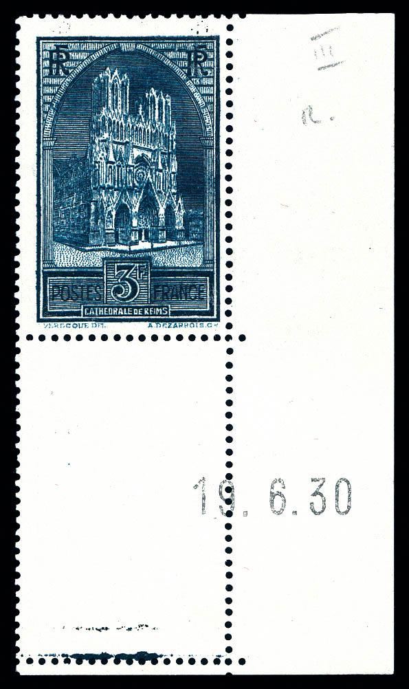 N°259b, Cathédrale de Reims type III cdf daté du 19.6.30. SUP (certificat) Qualité: ** Cote: 900 euros (Image)