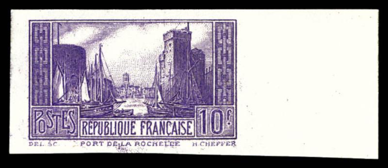 N°261, Port de La Rochelle, 10F violet non dentelé, bord de feuille latéral. SUP. R. (certificat) Qualité: (*) (Image)
