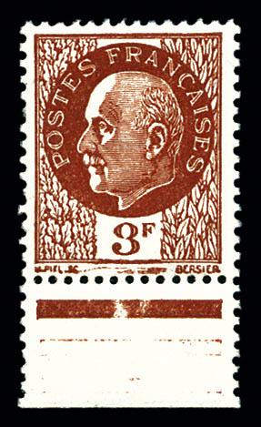 N°525B, (N°Maury), 3f brun non émis dentelé, bdf. SUP. R.R. (signé Calves/certificats) Qualité: ** Cote: 1350 euros (Image)