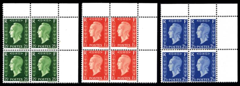 N°701D/F, Série Non émise de Londres, les trois valeurs en bloc de quatre coin de feuille, TB (certificat) Qualité: ** Cote: 540 euros (Image)