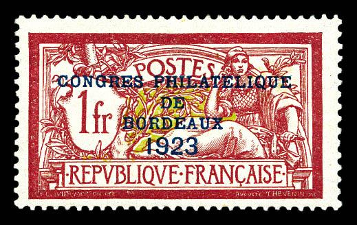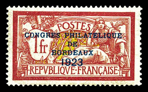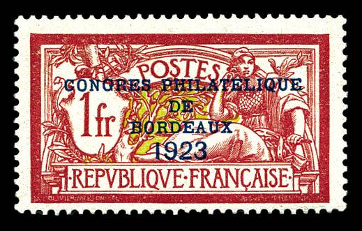 N°182, Congrès de Bordeaux de 1923, très bon centrage, SUP (certificat) Qualité: ** Cote: 1387 euros (Image)