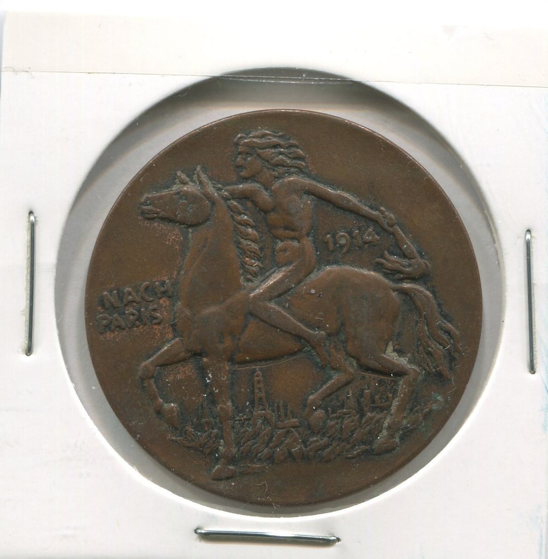 France 1917 WW1 Nach Paris Victims Propaganda Medal AU. A historic WW1 medal in excellent condition, appearing virtually uncirculated.(Image 1)(Image 2)
