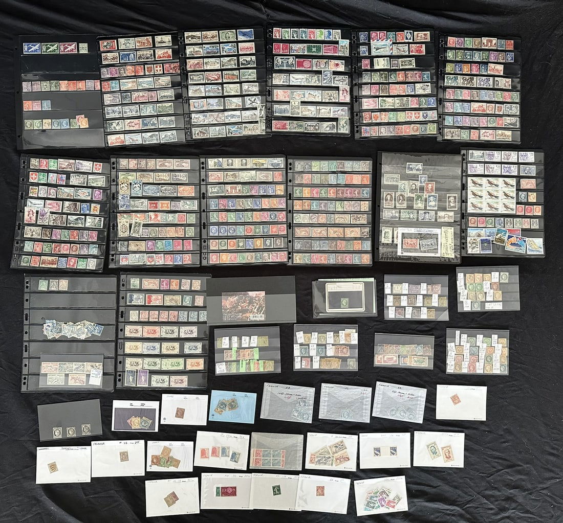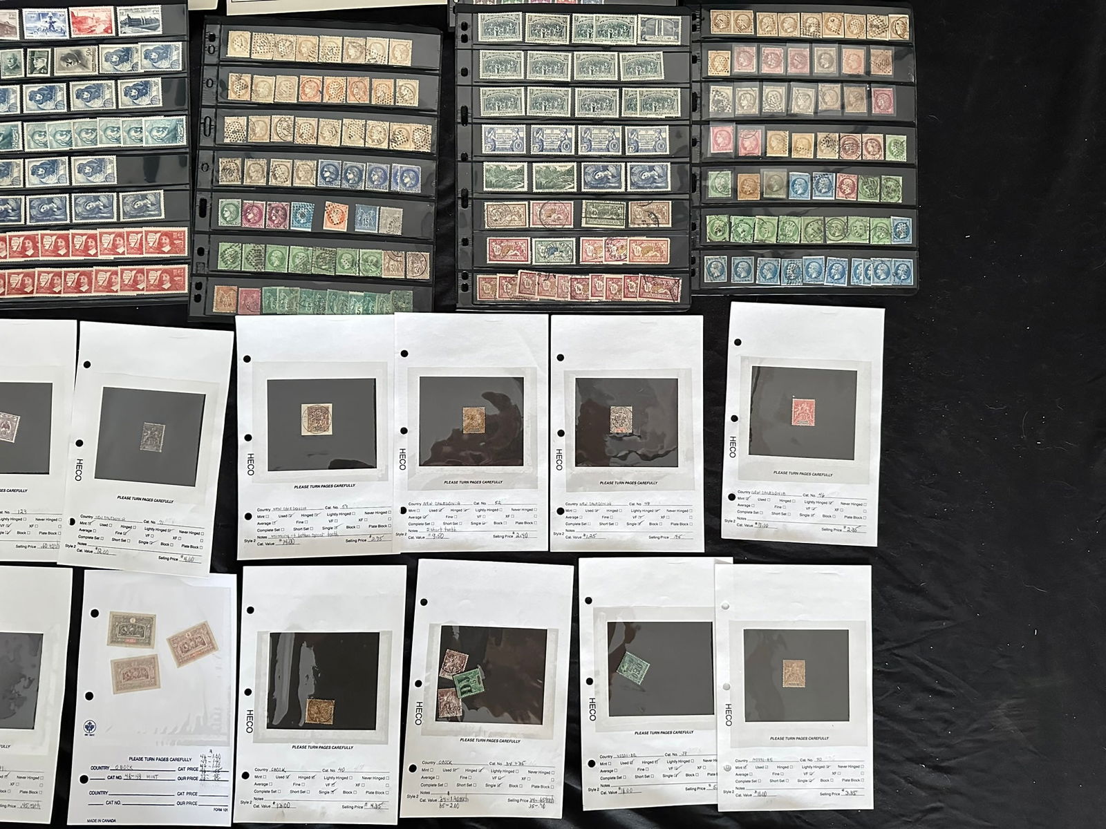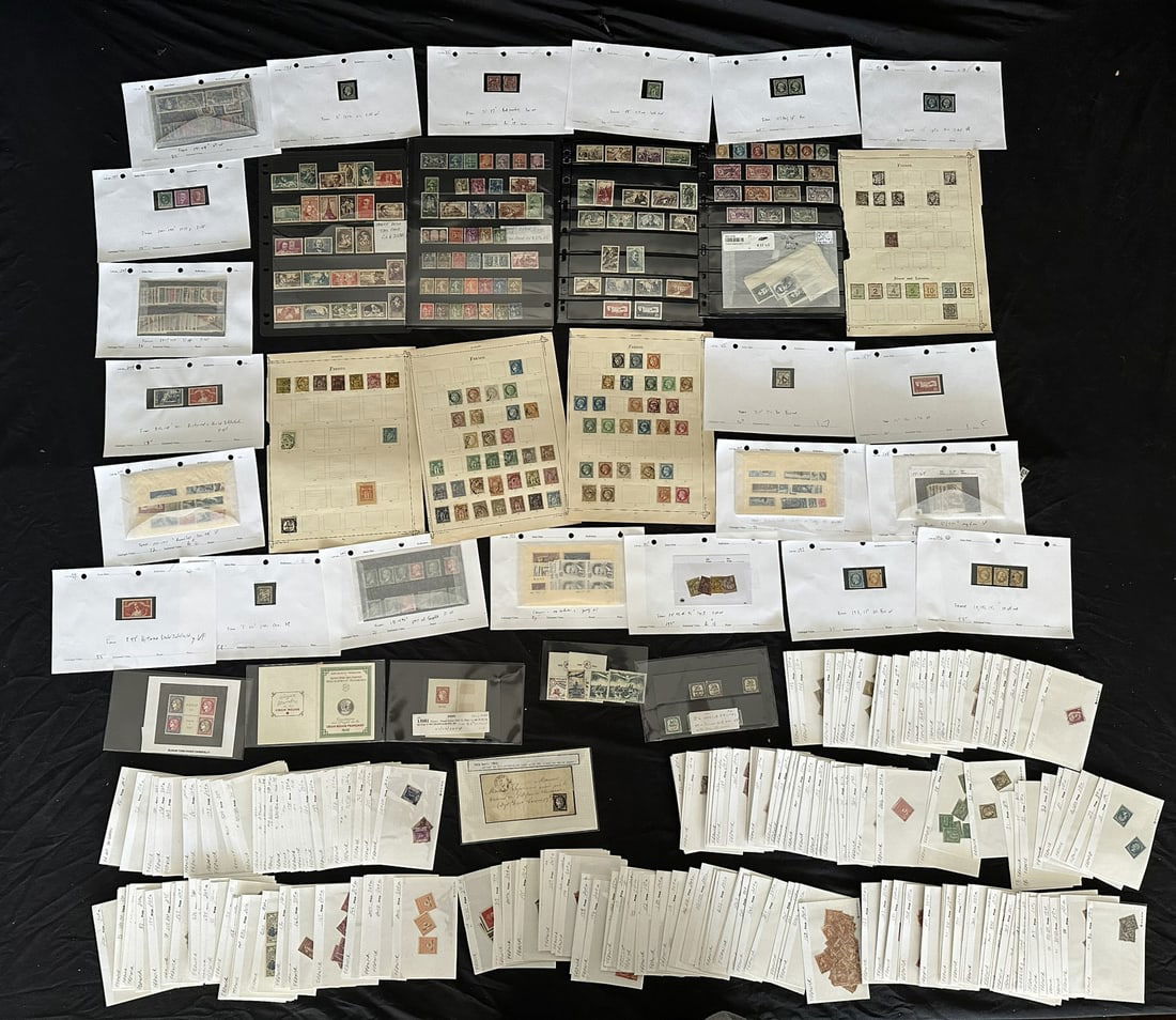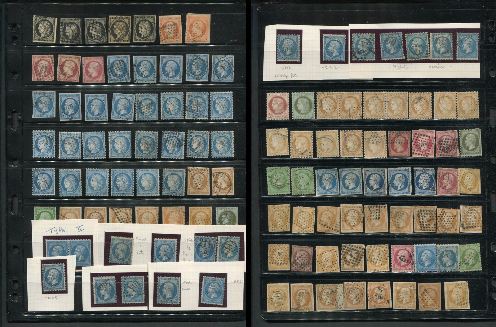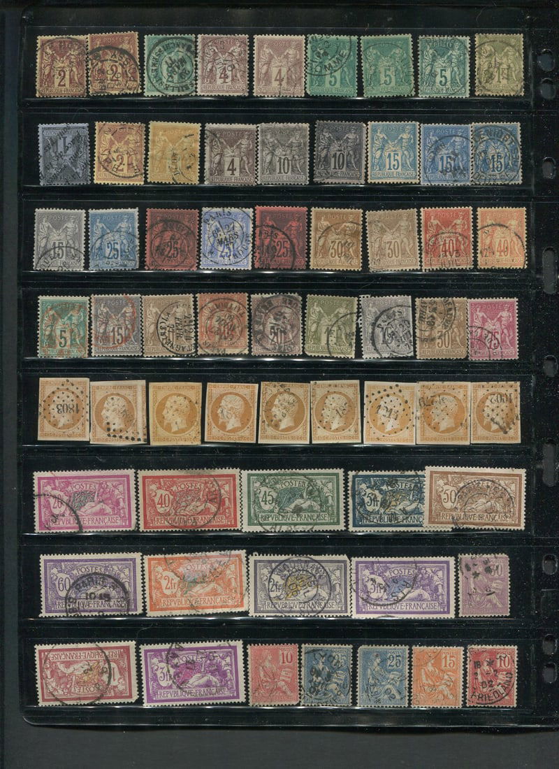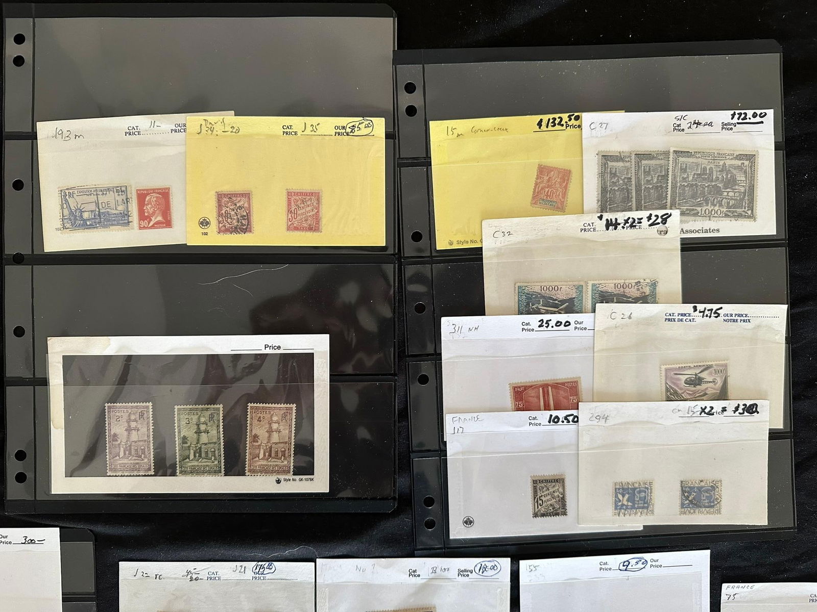 A larger mint and mostly used France accumulation with plenty of better and earlier material throughout. Includes #15/#502 with BOB in identified and priced 103's (some noticeable duplication in places), noticeably better identified and priced items on dealer cards including used #10, #11 (3), #75, #83, #84, #93-#94, #96, #J15, #J18, #J22 plus more, #3/#703 neatly hinged on album pages, better items mostly mint on stock sheets, plus a quality entire dated April 10th, 1849 with a #3 20c black on white paper. Early material generally at least fine, at least f-vf onwards. Very large cat val overall.(Image 1)(Image 2)(Image 3)(Image 4)(Image 5)(Image 6)(Image 7)