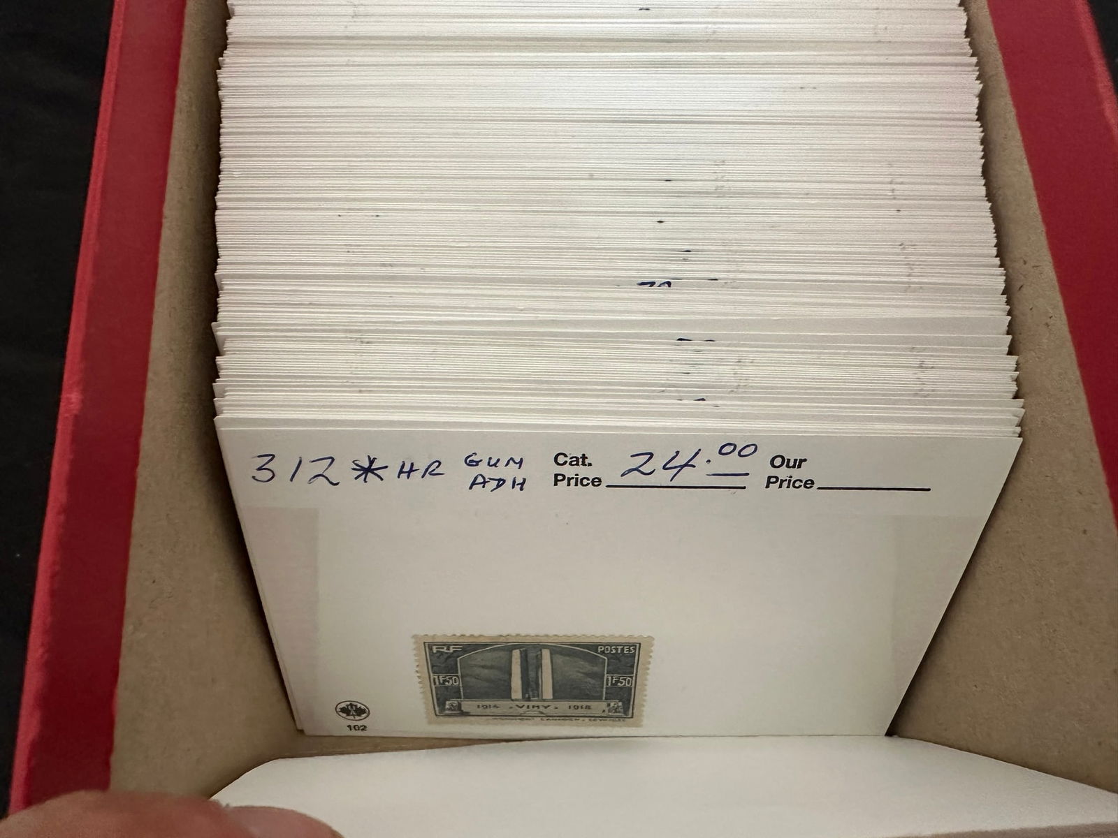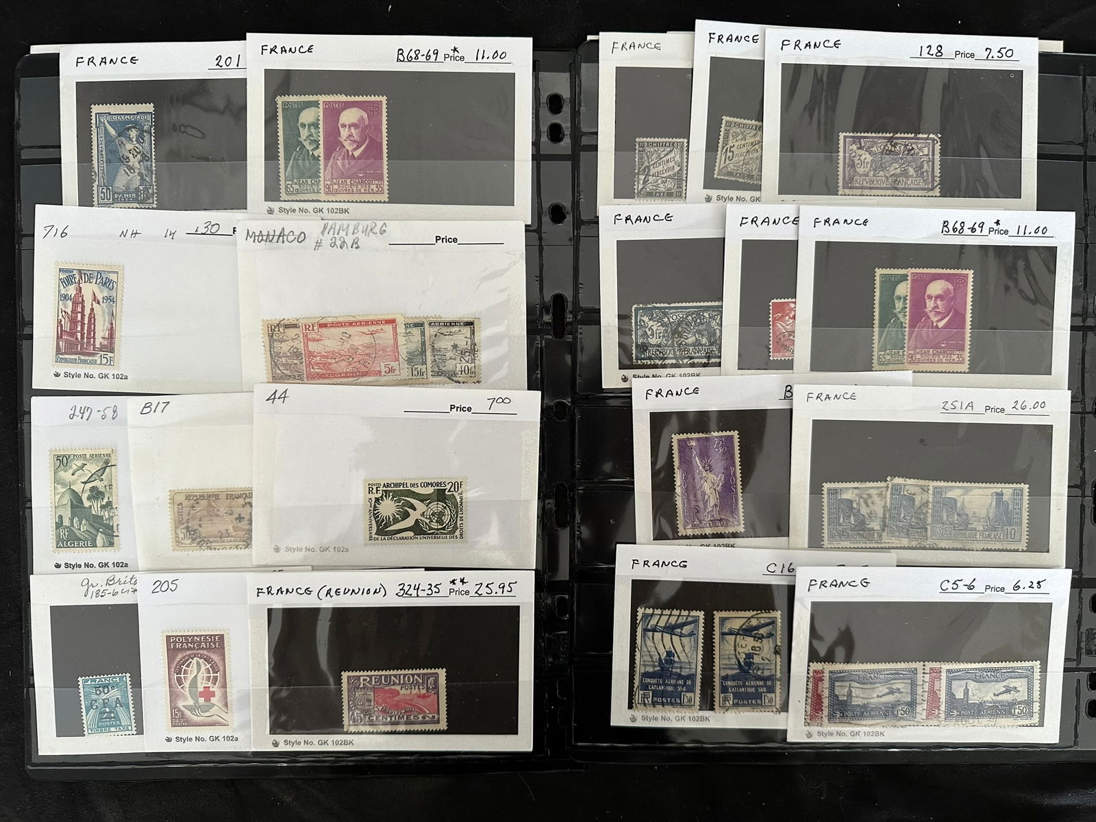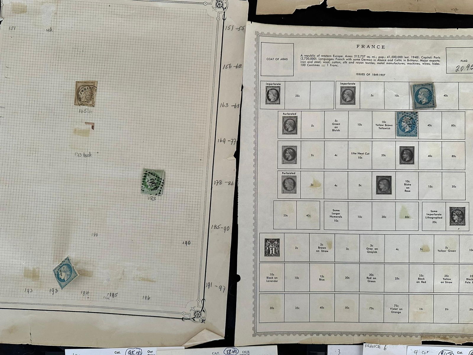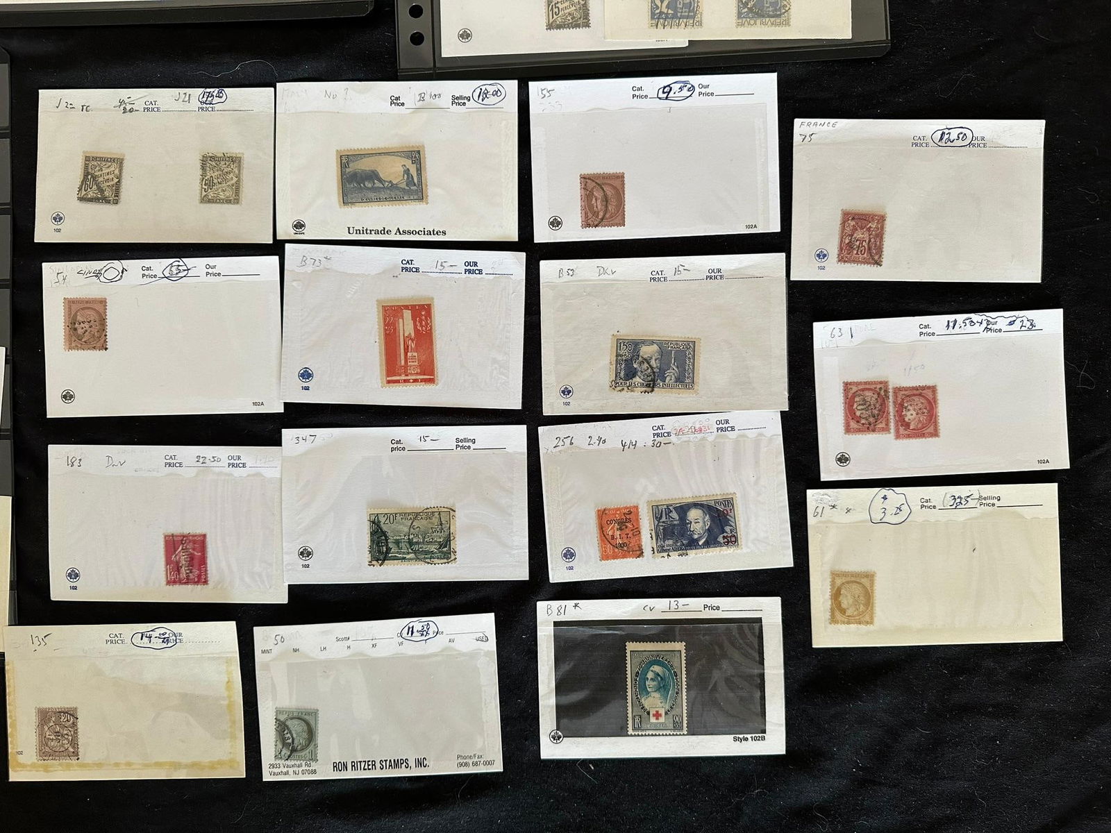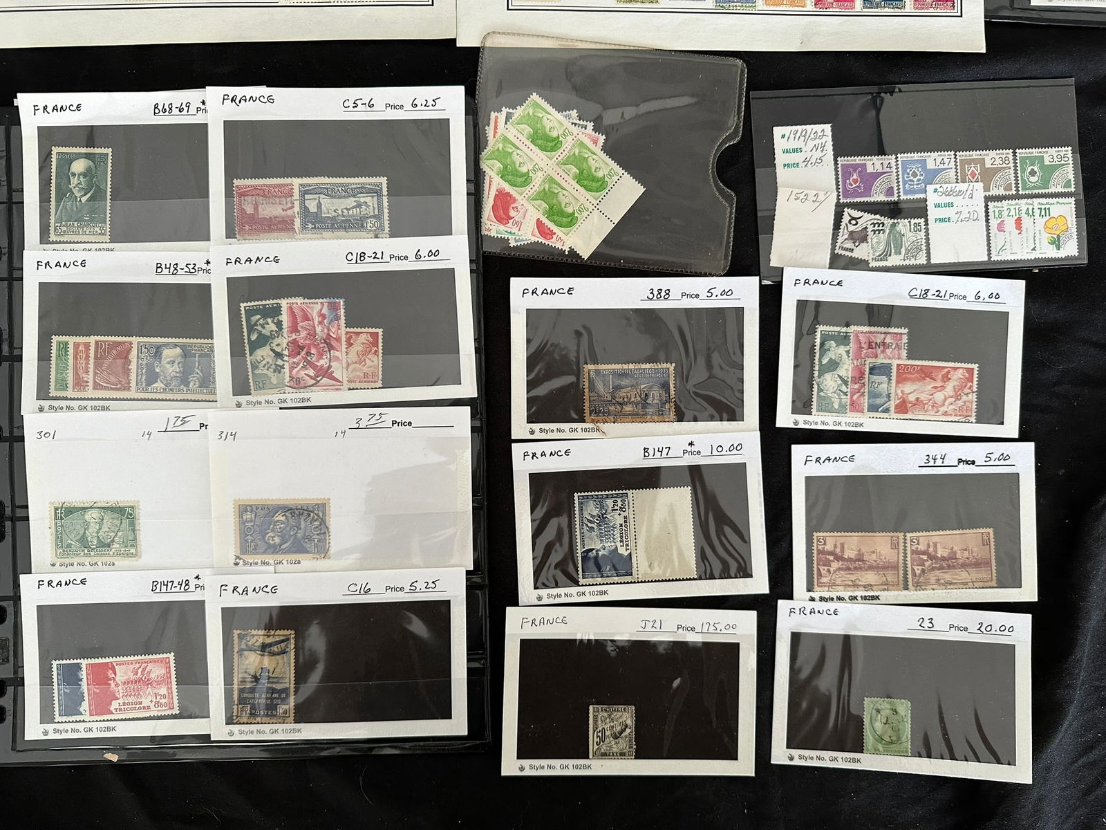 A larger mint and mostly used France accumulation with plenty of better and earlier material throughout. Includes #15/#502 with BOB in identified and priced 103's (some noticeable duplication in places), noticeably better identified and priced items on dealer cards including used #10, #11 (3), #75, #83, #84, #93-#94, #96, #J15, #J18, #J22 plus more, #3/#703 neatly hinged on album pages, better items mostly mint on stock sheets, plus a quality entire dated April 10th, 1849 with a #3 20c black on white paper. Early material generally at least fine, at least f-vf onwards. Very large cat val overall.(Image 1)(Image 2)(Image 3)(Image 4)(Image 5)(Image 6)(Image 7)