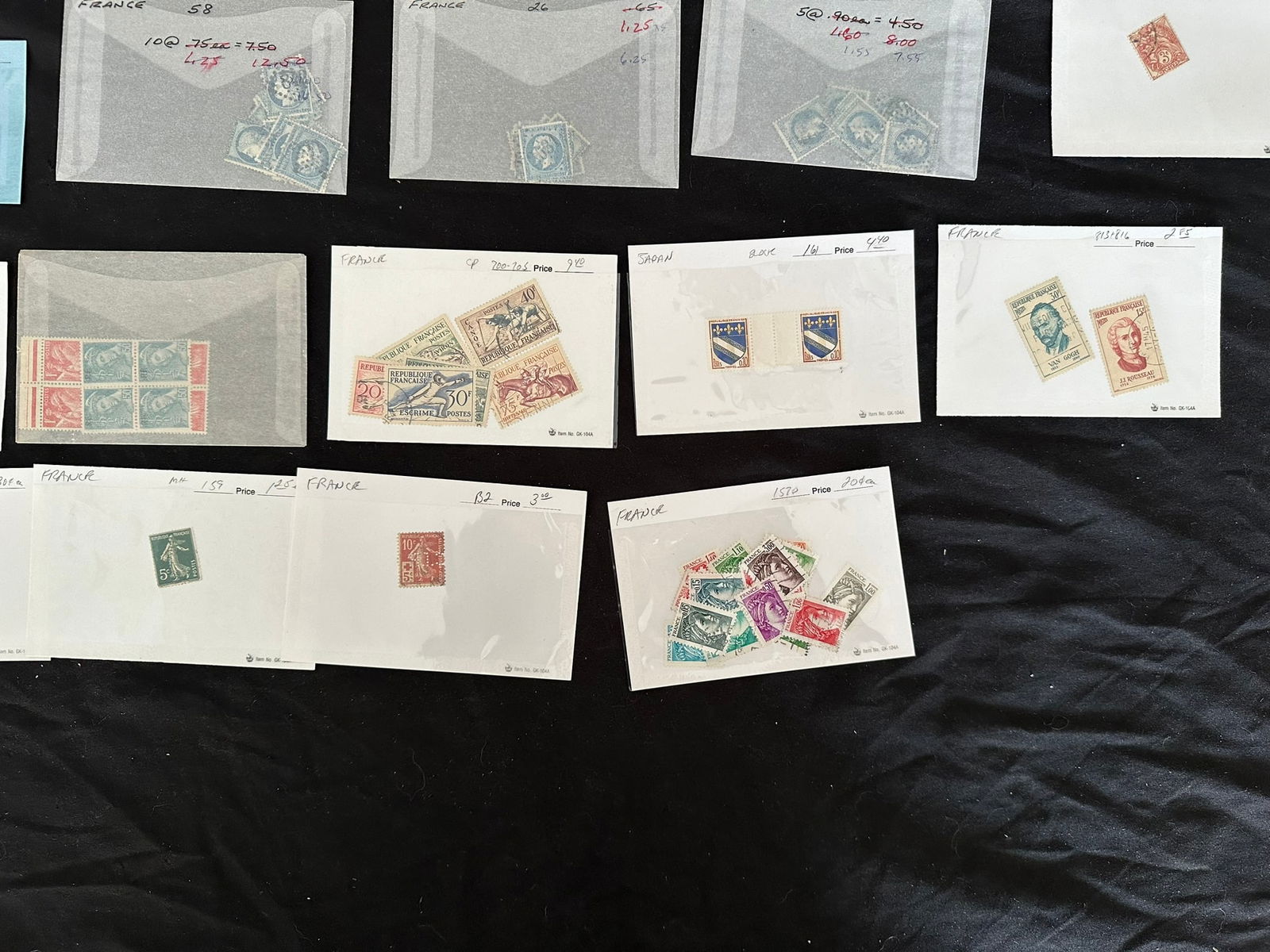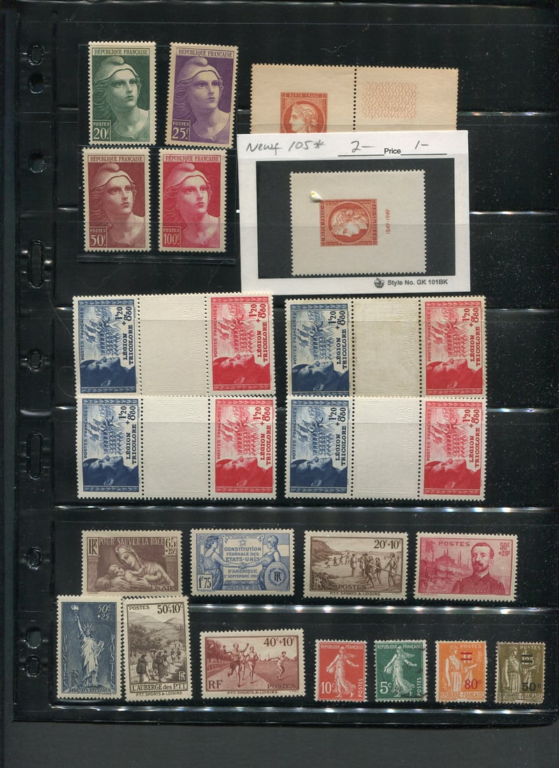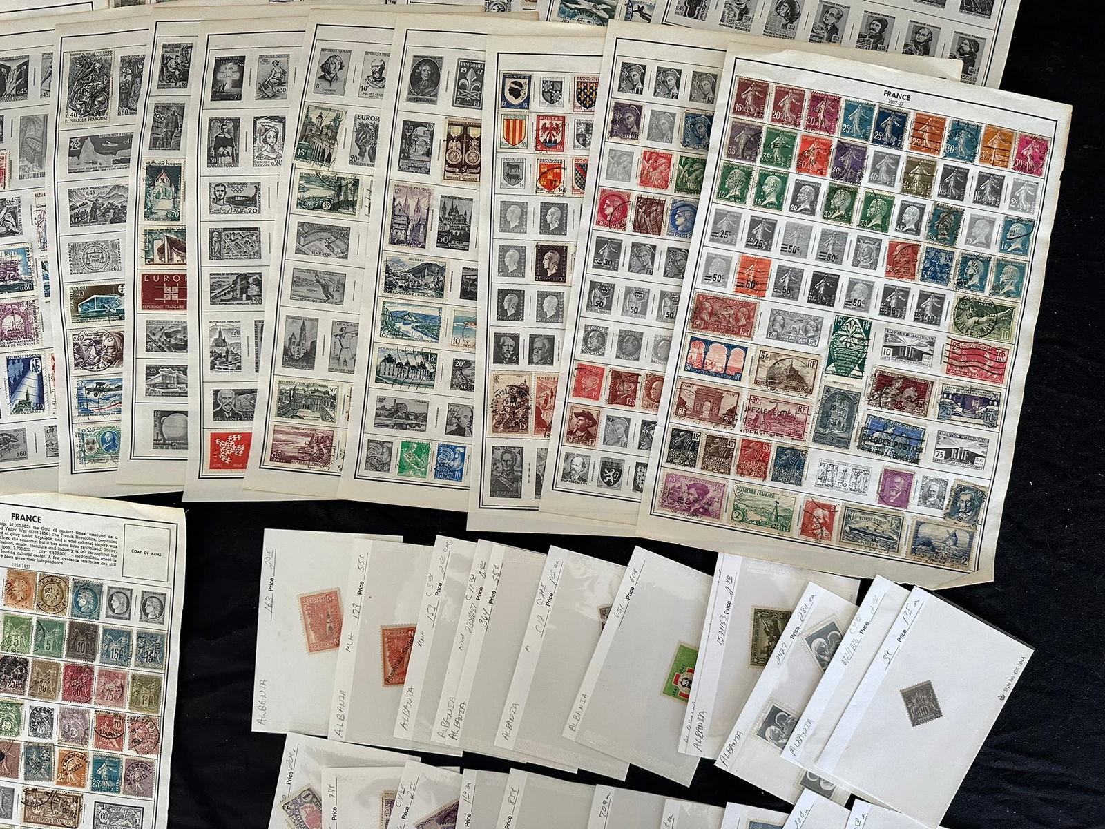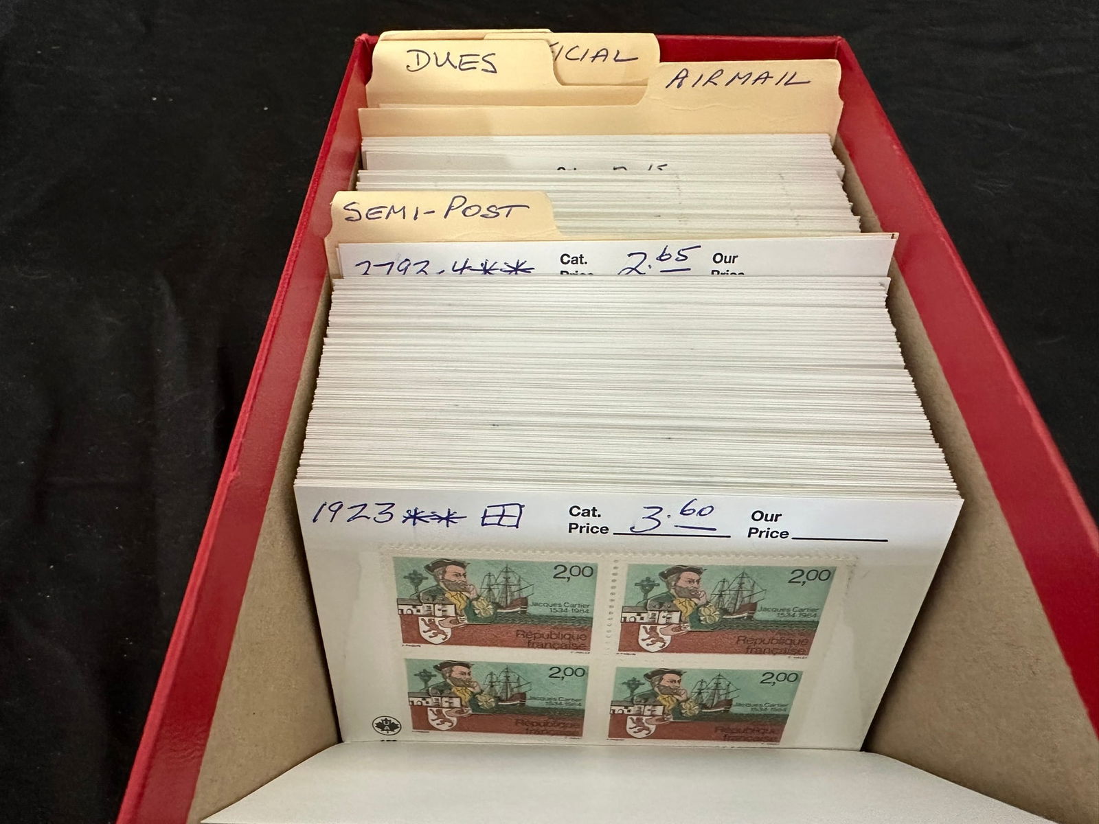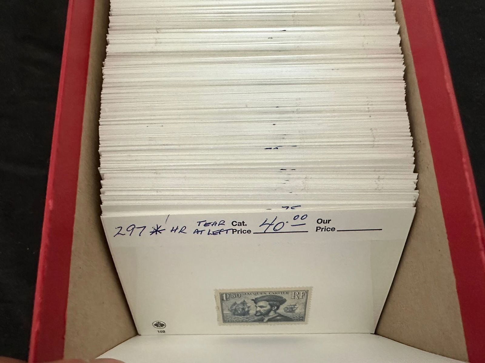 A larger mint and mostly used France accumulation with plenty of better and earlier material throughout. Includes #15/#502 with BOB in identified and priced 103's (some noticeable duplication in places), noticeably better identified and priced items on dealer cards including used #10, #11 (3), #75, #83, #84, #93-#94, #96, #J15, #J18, #J22 plus more, #3/#703 neatly hinged on album pages, better items mostly mint on stock sheets, plus a quality entire dated April 10th, 1849 with a #3 20c black on white paper. Early material generally at least fine, at least f-vf onwards. Very large cat val overall.(Image 1)(Image 2)(Image 3)(Image 4)(Image 5)(Image 6)(Image 7)