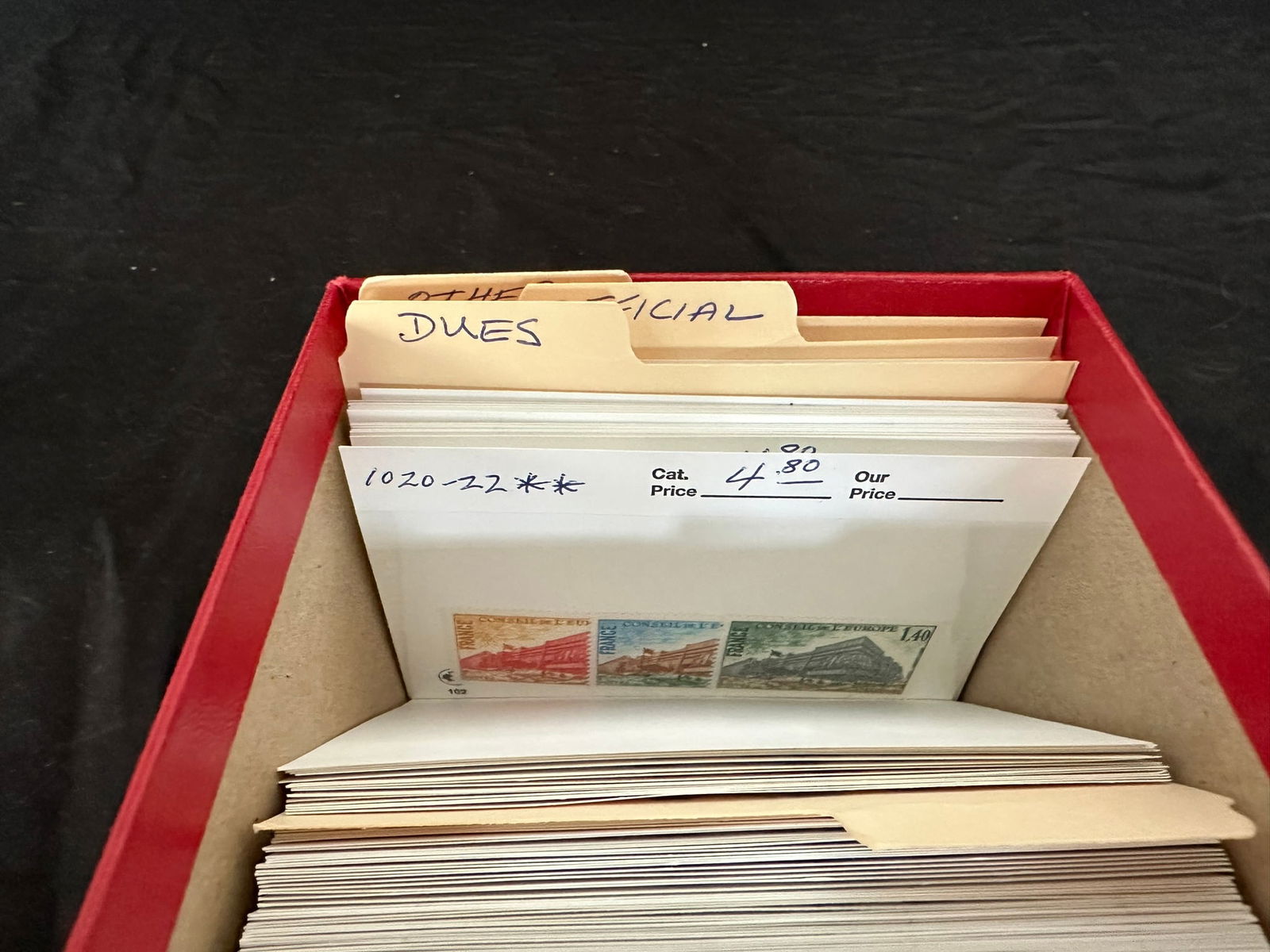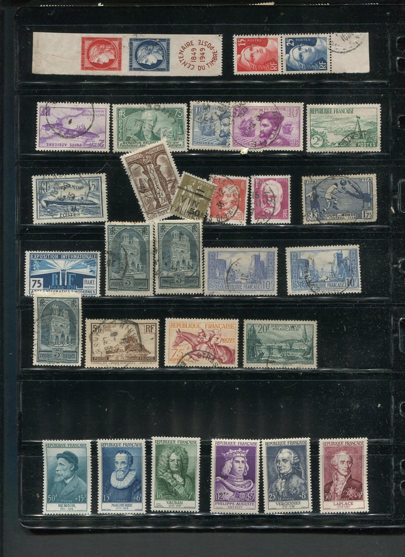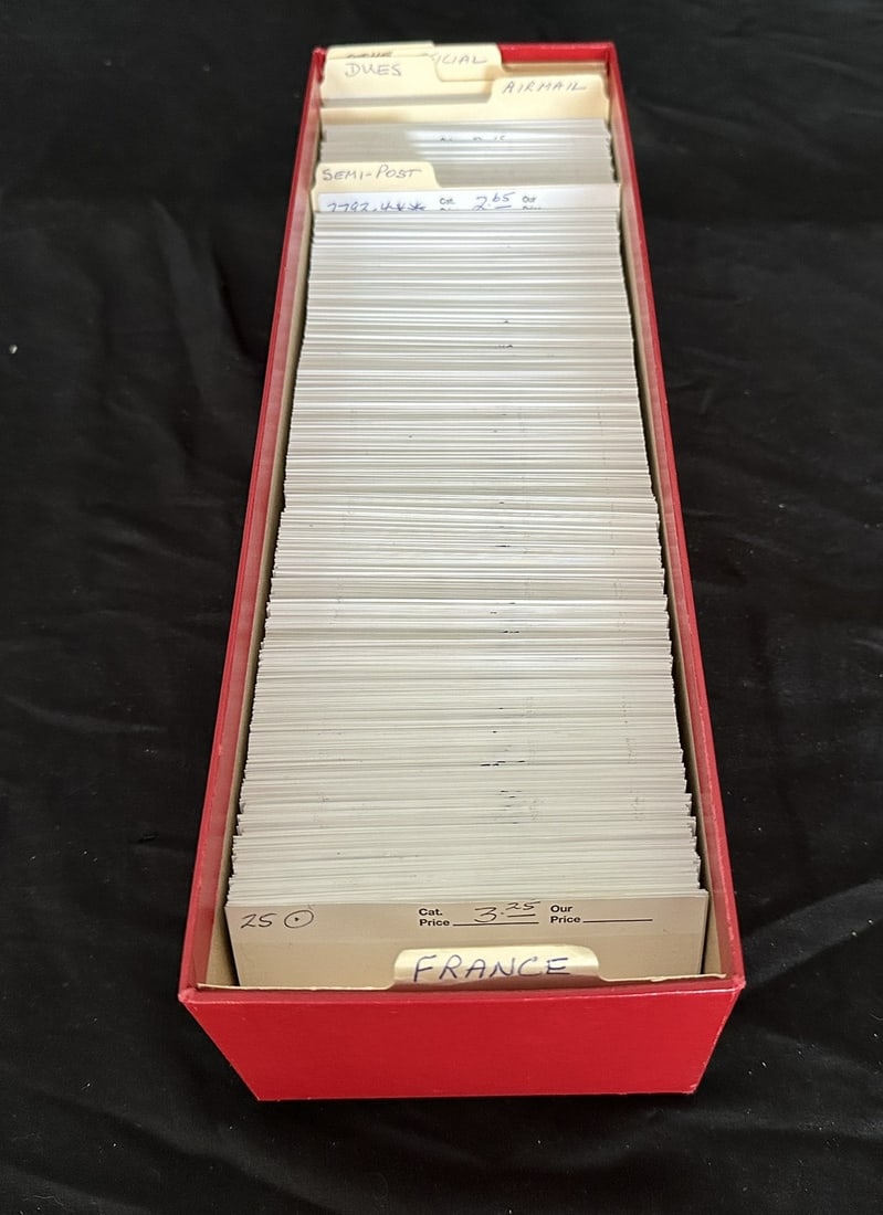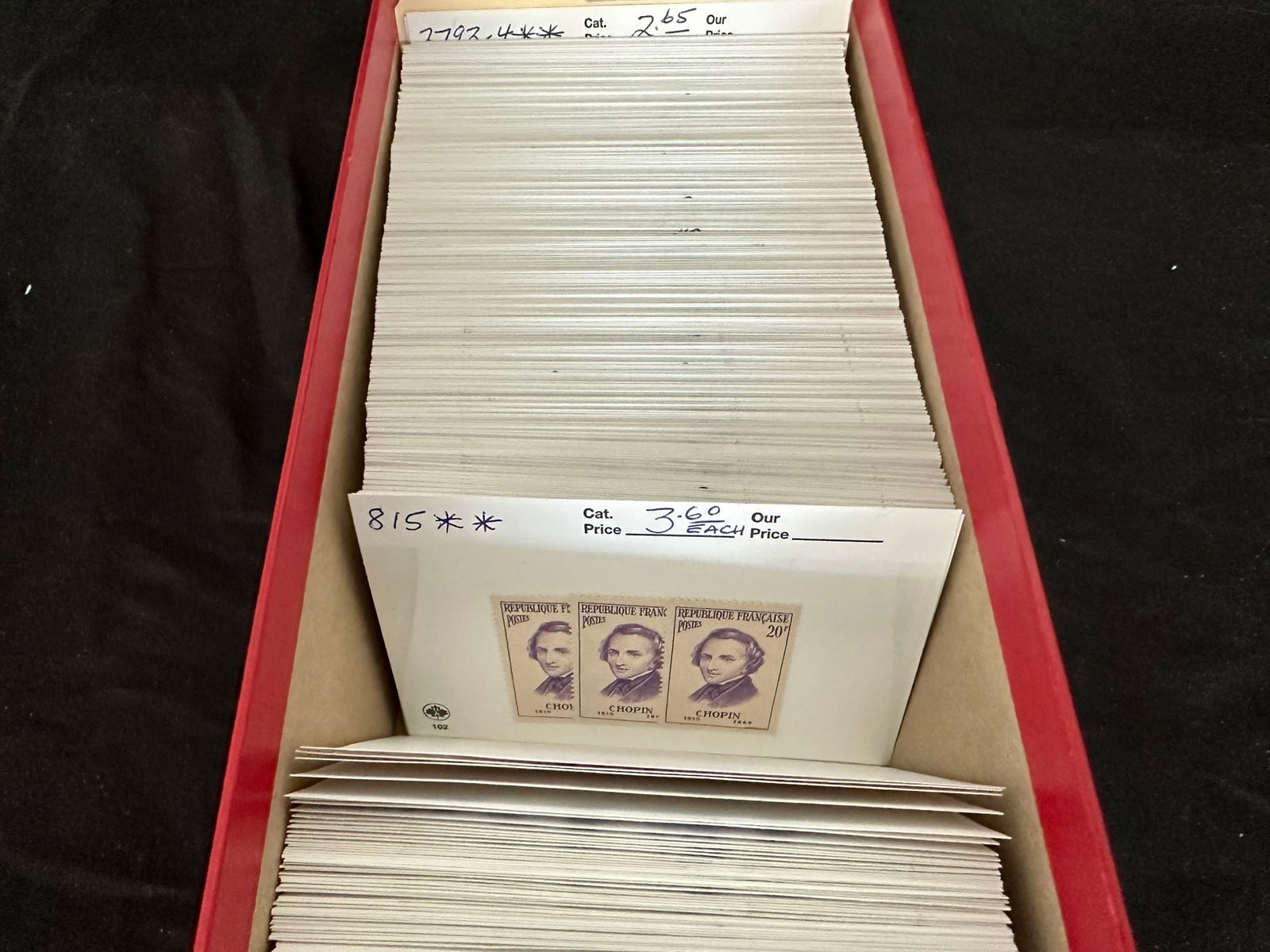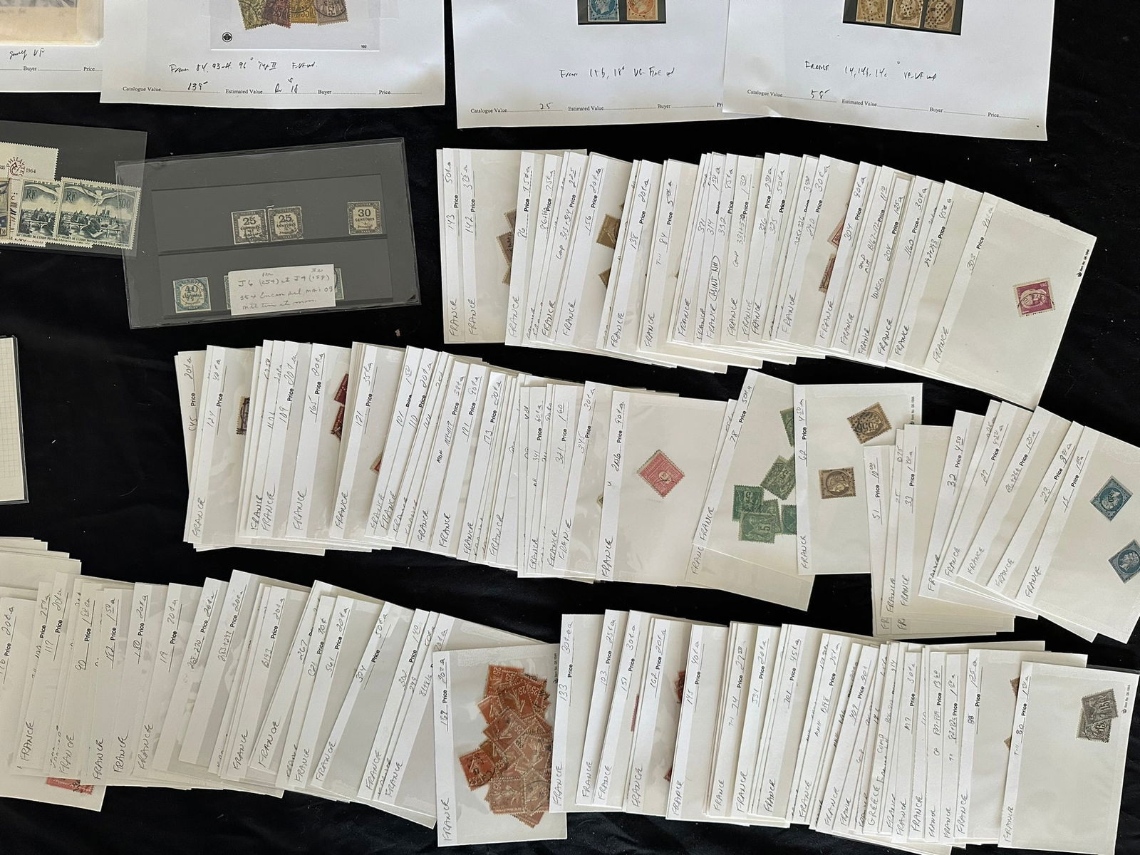 A larger mint and mostly used France accumulation with plenty of better and earlier material throughout. Includes #15/#502 with BOB in identified and priced 103's (some noticeable duplication in places), noticeably better identified and priced items on dealer cards including used #10, #11 (3), #75, #83, #84, #93-#94, #96, #J15, #J18, #J22 plus more, #3/#703 neatly hinged on album pages, better items mostly mint on stock sheets, plus a quality entire dated April 10th, 1849 with a #3 20c black on white paper. Early material generally at least fine, at least f-vf onwards. Very large cat val overall.(Image 1)(Image 2)(Image 3)(Image 4)(Image 5)(Image 6)(Image 7)