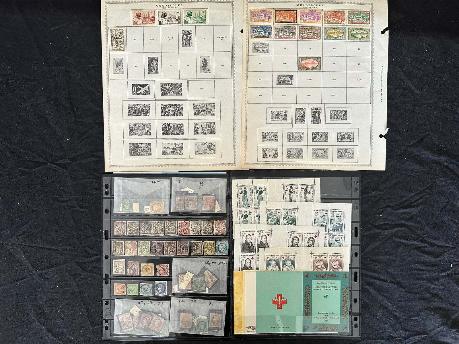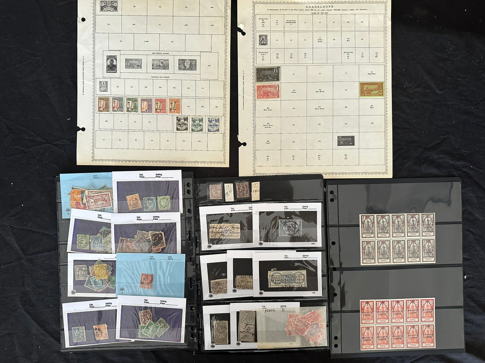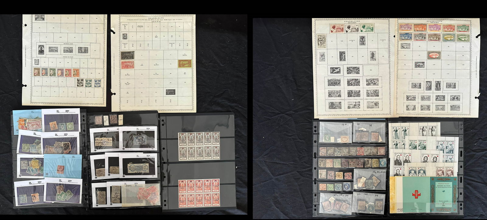 A France, Guadeloupe and French India accumulation. Mostly early France (generally fine), with two f-vf mnh French India blocks of 10 of #158 and #162 (#162 with light separation between positions 3 and 4). Total Scott- $500+.(Image 1)(Image 2)(Image 3)
