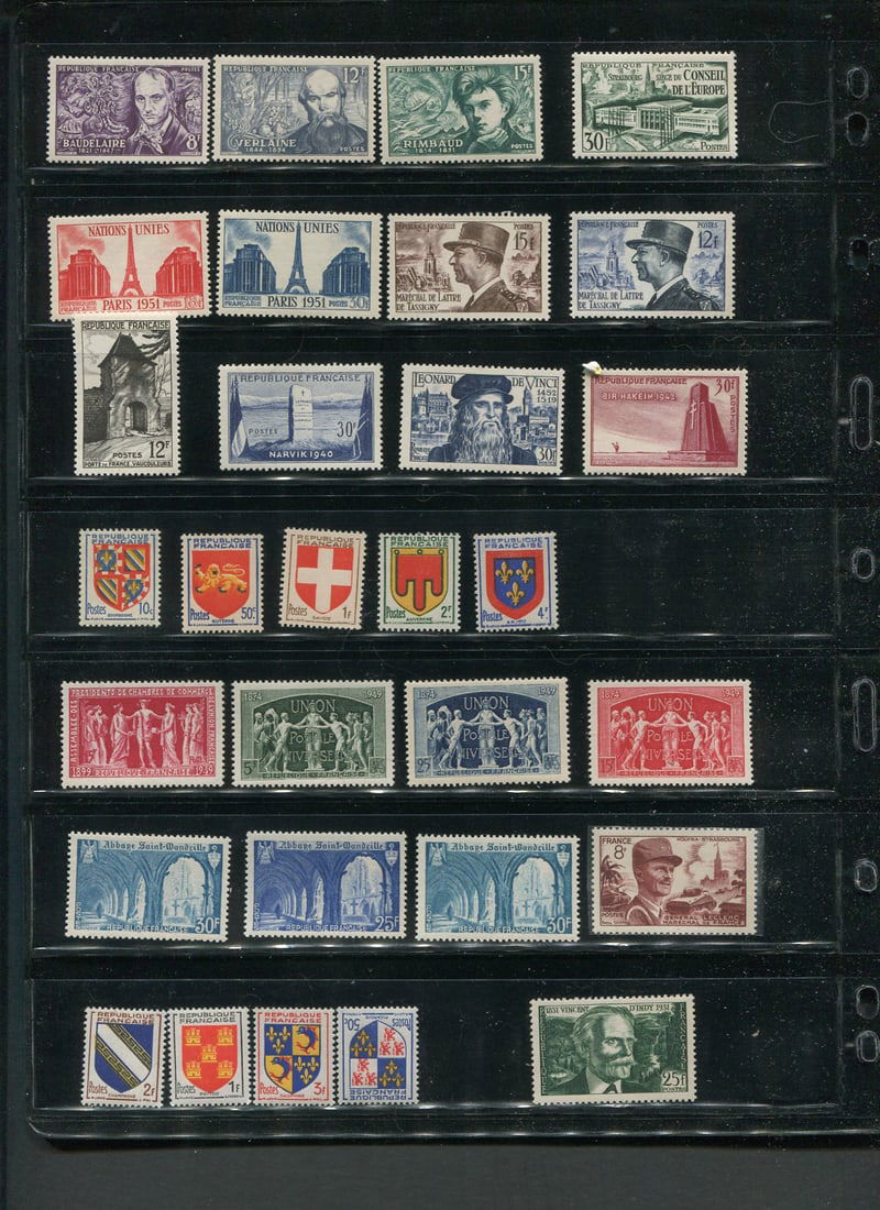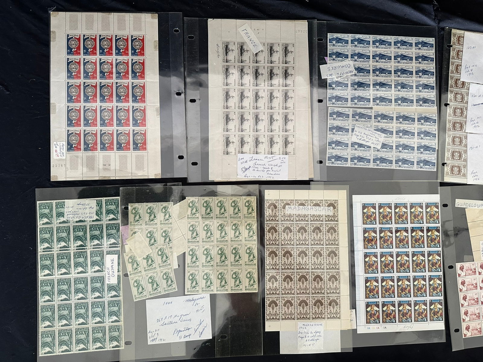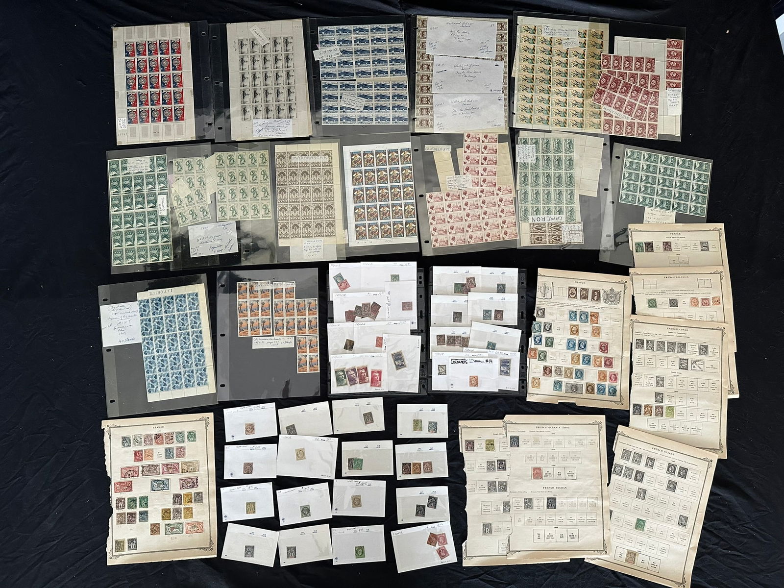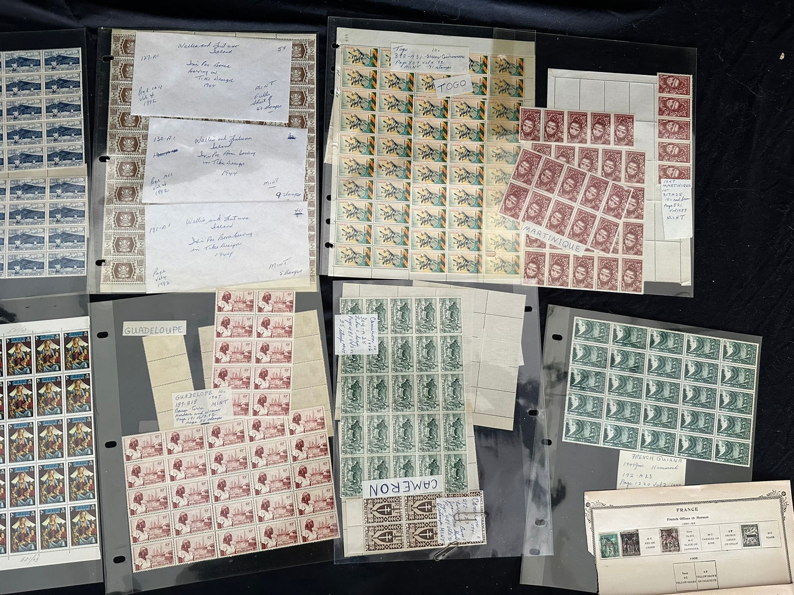 A France, Guadeloupe and French India accumulation. Mostly early France (generally fine), with two f-vf mnh French India blocks of 10 of #158 and #162 (#162 with light separation between positions 3 and 4). Total Scott- $500+.(Image 1)(Image 2)(Image 3)