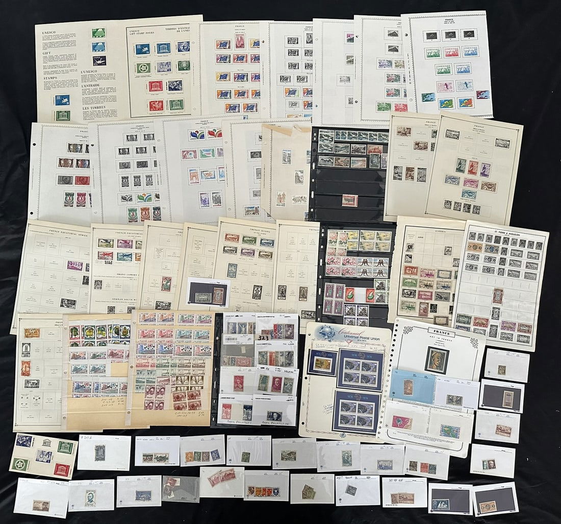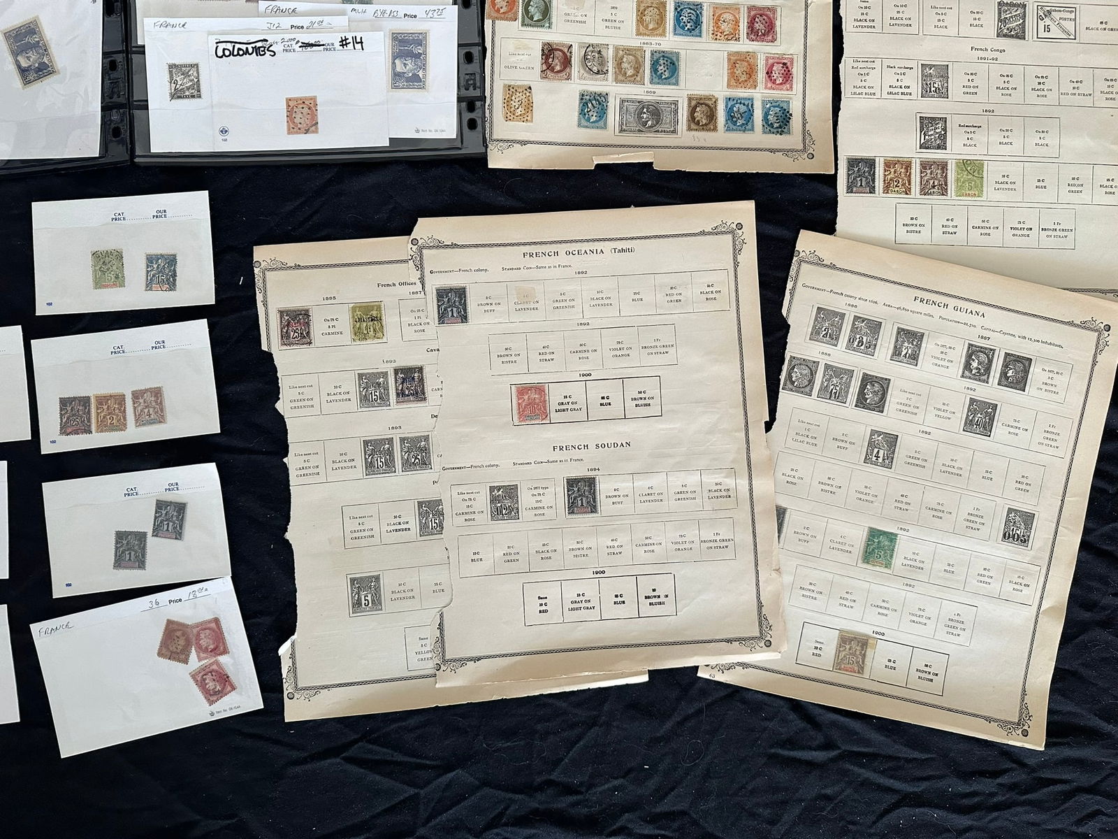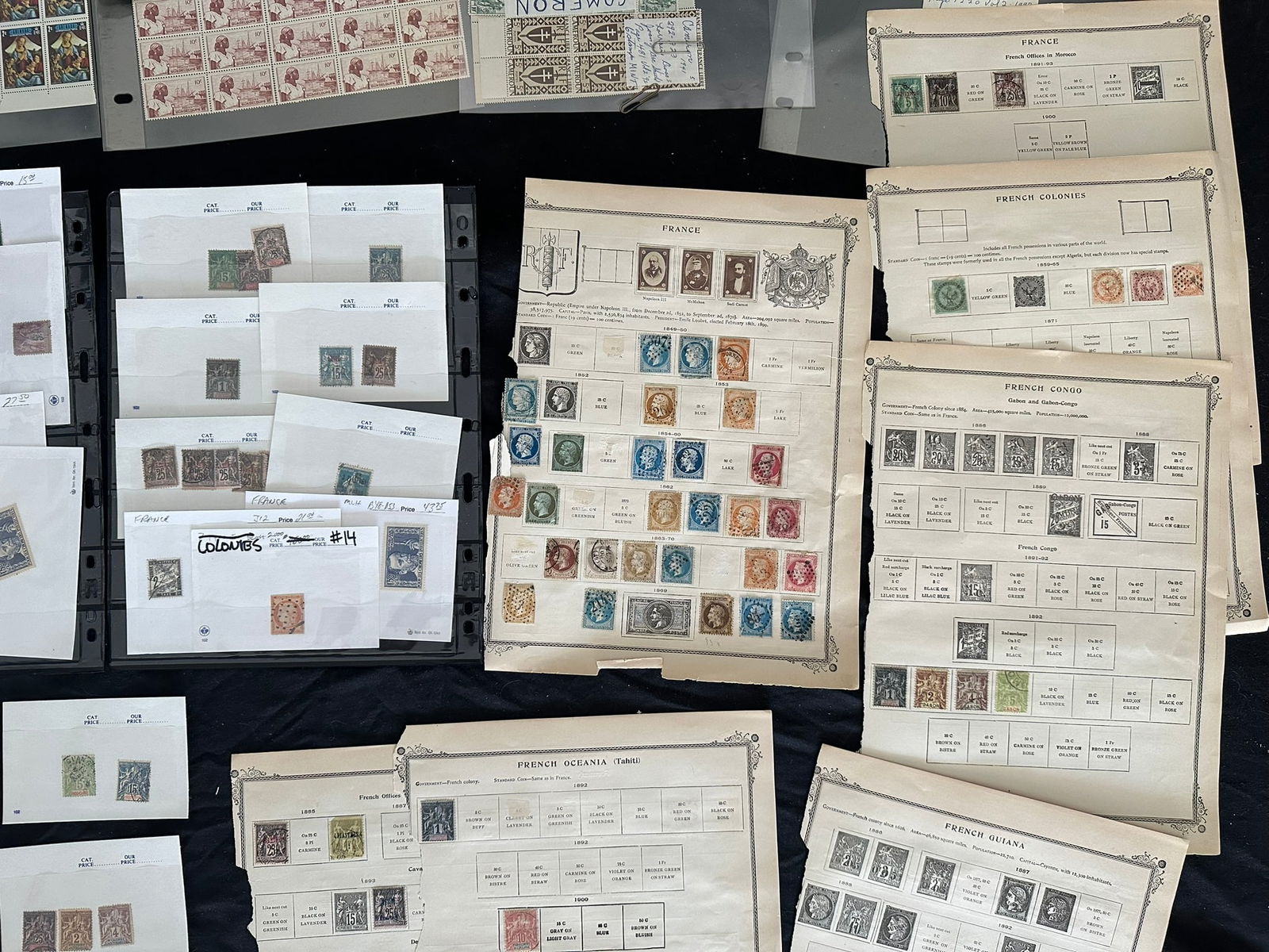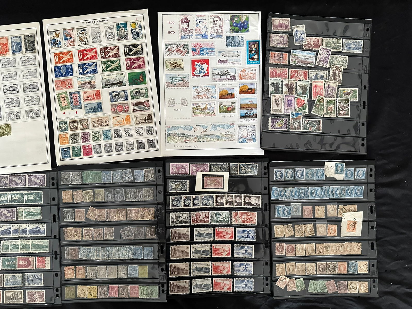 A mint and used France and Colonies accumulation from the 1850's to the 1930's., on double sided stock sheets, dealer window cards and on loose album pages. Including a fair amount of used and duplicated 1850's-1870's perf and imperf issues, mint #125, etc. Contains some mint San Marino including #1, #31, etc. A small grouping of mostly mint Reunion, but includes used #3, Malagasy including mint #41, used #76, Senegal including #J1 tied on piece, St. Pierre and Miquelon, Middle Congo, Moheli, Martinique including mint #40, #45, Mauritania, Mayette, Nossi-be, Obock, New Caledonia, Ivory Coast, as well as a stocksheet of Monaco.(Image 1)(Image 2)(Image 3)(Image 4)(Image 5)(Image 6)(Image 7)(Image 8)(Image 9)(Image 10)