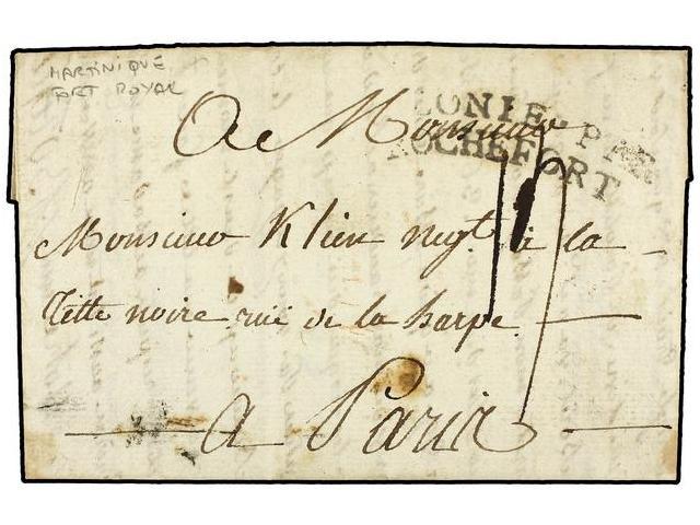 MARTINICA. 1782 (26 Mayo). FORT ROYAL a PARIS. Carta con gran parte del texto. Marca de entrada en Francia COLONIES PAR/ ROCHEFORT.(Image1)