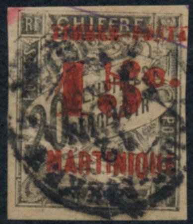 New Caledonia. Scott 28, F-VF, 1891-2 15c on 20c, red surcharge CV $37.50 (Image)