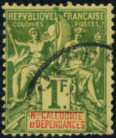 New Caledonia. Scott 58, F-VF, 1892 Nav. & Comm. 1fr CV $26.50 (Image)