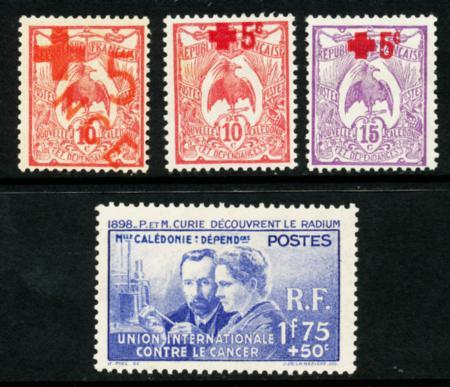 New Caledonia. Scott B1-B4, F-VF H, 1915-1938 semi-postal stamps CV $21.00 (Image)