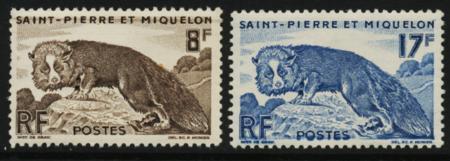 St. Pierre and Miquelon. Scott 343-344, VF NH, 1952 set of 2, silver fox CV $13.75 (Image)