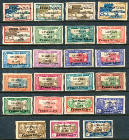 Wallis and Futuna Islands. Scott 94//125, F-VF NH, 1941-43 1c//5r, includes #110, 23 stamps CV $185.25 (Image)