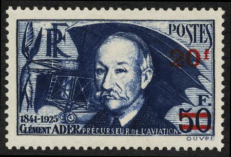 France. Scott 414a, VF NH, 1940 20fr on 50fr ultra, thin paper CV $75.00 (Image)