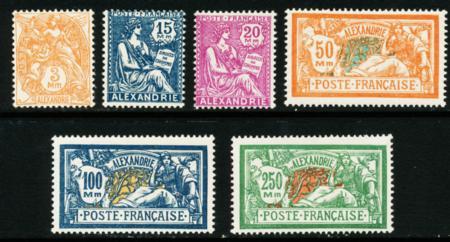 France-Offices in Egypt-Alexandria. Scott 77-86, F-VF LH, 1927-28 set of 6 CV $62.75 (Image)