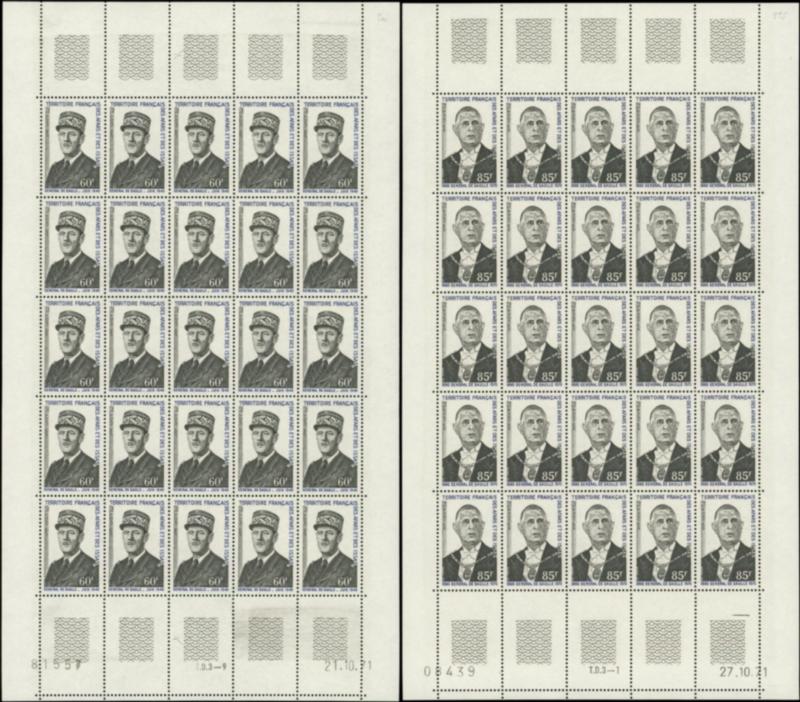 375/76 : De Gaulle, la PAIRE en FEUILLES de 25, TB (Image)