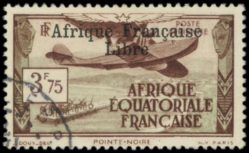 PA 16 : 3f75 brun rouge et vert gris, obl., TB, FRANCE LIBRE, obl., TB. Br (Image)