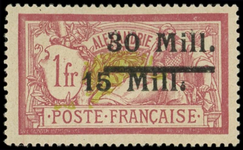 31a : 3p. brun, surcharge BLEUE, TB (Image)