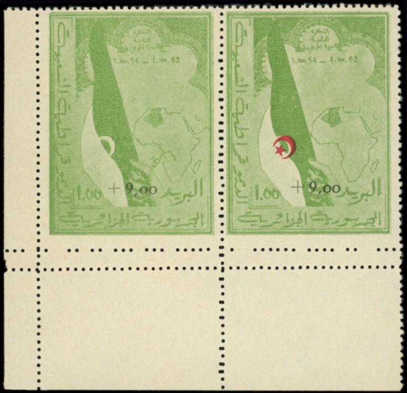 363A : +9,00 sur 1,00 vert et rouge, PAIRE cdf, 1 ex. SANS le ROUGE, TB, signé Mayer (Image)