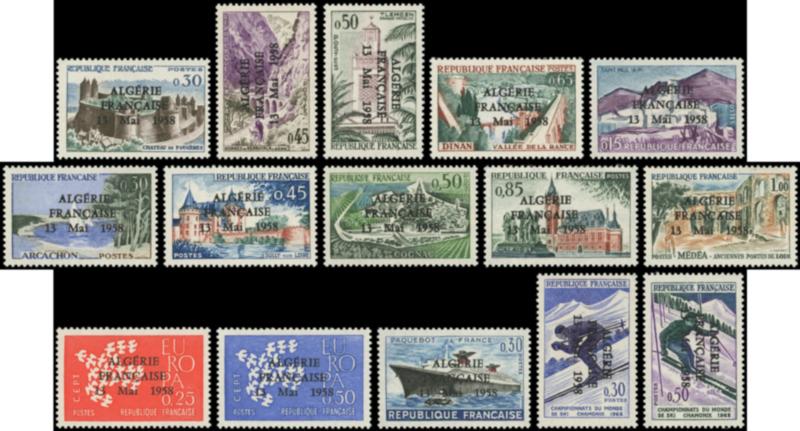 15 timbres de France surch. ALGERIE FRANCAISE 13 mai 1958, TB (Image)