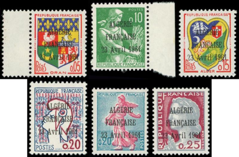 6 petits formats de France surchargés ALGERIE FRANCAISE 23 avril 1961, TB (Image)