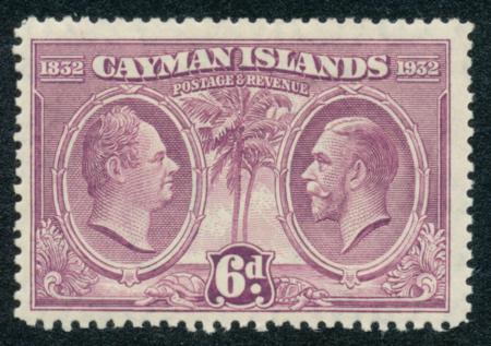 Cayman Islands. Scott 76, F-VF LH, 1932 6p red violet CV $13.00 (Image)