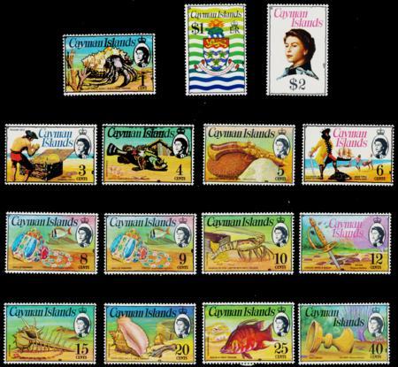 Cayman Islands. Scott 331-345, VF NH, 1974-75 Set CV $51.10 (Image)