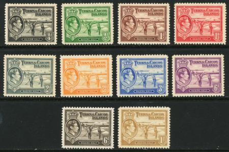 Turks and Caicos Islands. Scott 78-86 (incl. 85A) most NH, only 85A is H, VF NH/LH, 1938-45 ¼p-1sh CV $20.85 (Image)