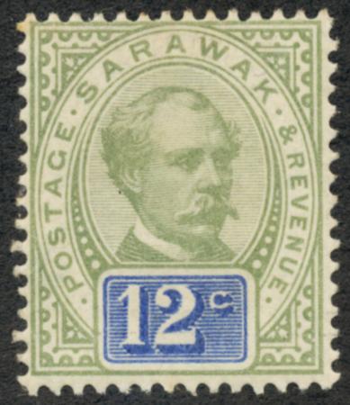 Sarawak. Scott 16, Fine HR, 1888 12c green & blue CV $20.00 (Image)